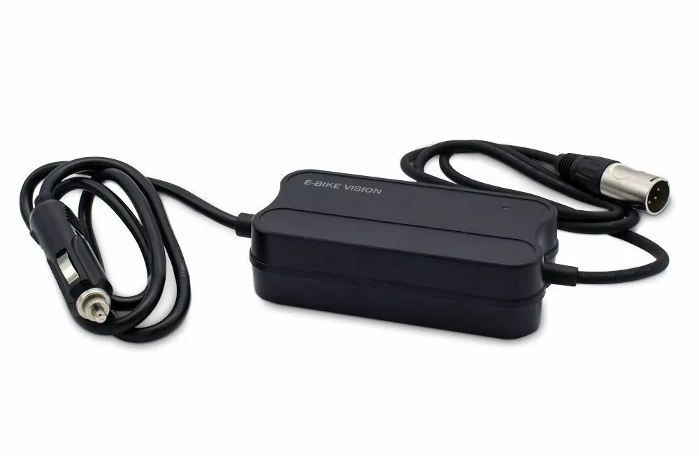 Chargeur de voiture EBV 12 Volt / 2A pour toutes les batteries de vélo électrique compatibles EBV PowerPack 36 V. Ce chargeur de voiture compact (environ 375 grammes) vous permet de recharger votre batterie de vélo électrique EBV PowerPack 36 V dans votre voiture ou votre camping-car. Son poids et ses dimensions réduites ainsi que sa recharge silencieuse sur le vélo électrique, en font un parfait compagnon pour vos vacances.