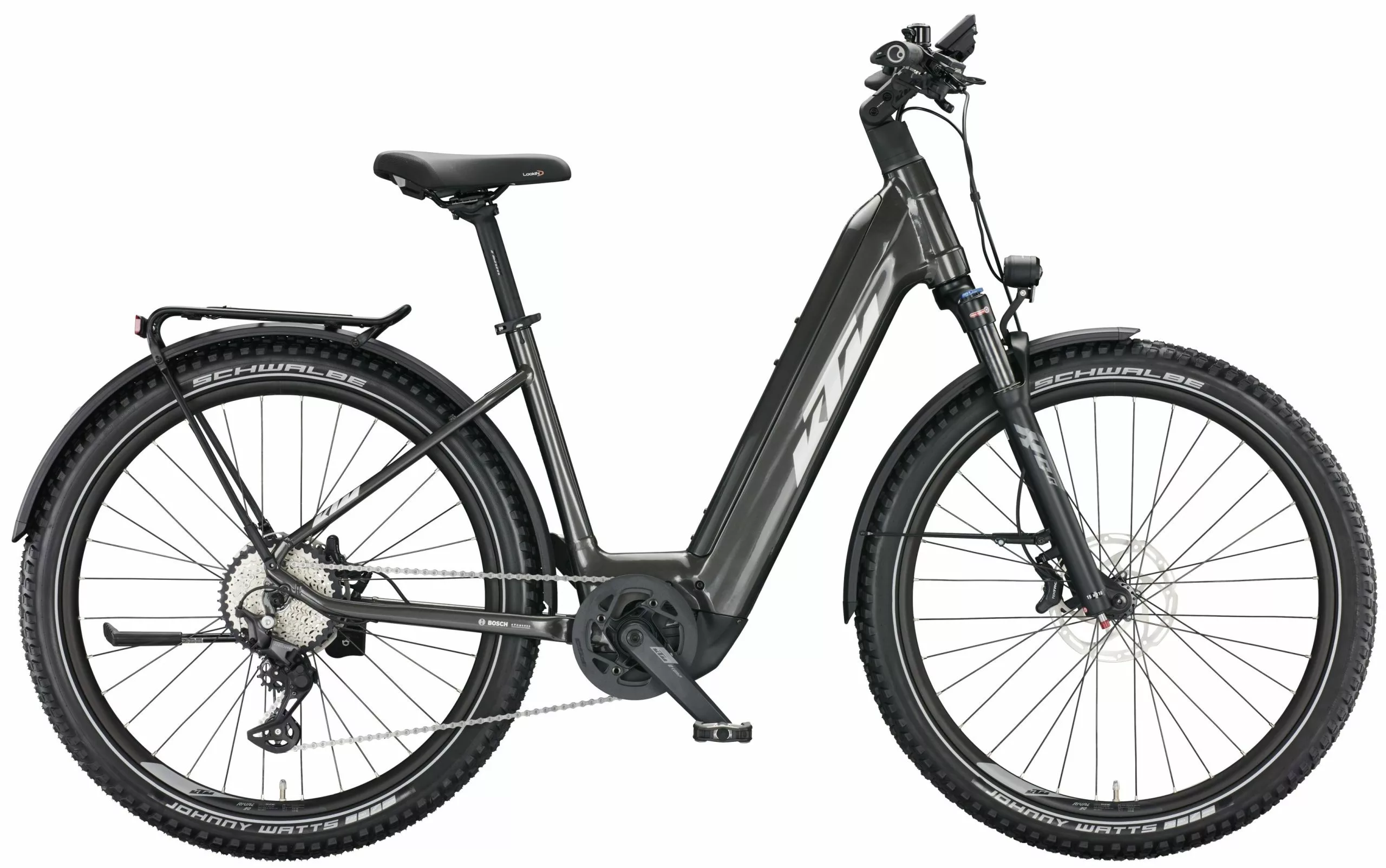 Le KTM Macina Aera 772 LFC 2022 est un vélo électrique hybride, à mi chemin entre le vélo de ville électrique et le VTT électrique de loisir. Grâce à sa fourche suspendue Suntour XCR 34 avec débattement de 80 mm, à sa transmission Shimano Deore et aux pneus Schwalbe Johnny Watts, il est aussi à l’aise en ville que sur les chemins. Son cadre bas permet un enjambement facile. Le nouveau moteur Bosch Smart System avec son couple de 85 Nm et sa batterie 750 Wh vous apporteront tout le soutien nécessaire dans toutes les situations de conduite. Ce puissant VTTAE à cadre bas est équipé d’un garde-boue, d’un système d’éclairage Litmove et d’un porte-bagages Racktime avec porte-sacoches, ce qui le rend idéal pour vos week-ends prolongés.